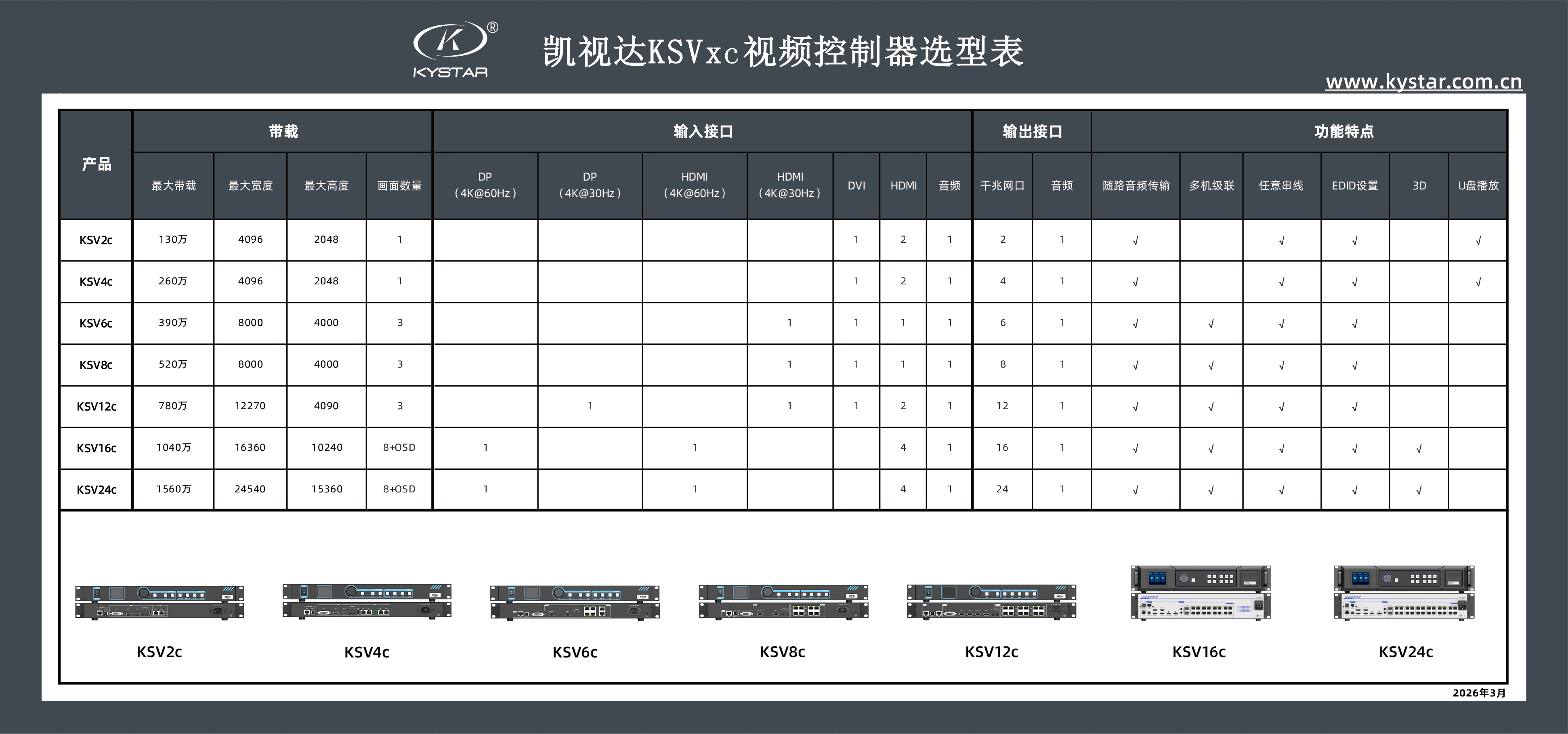KSVxc系列视频控制器选型表