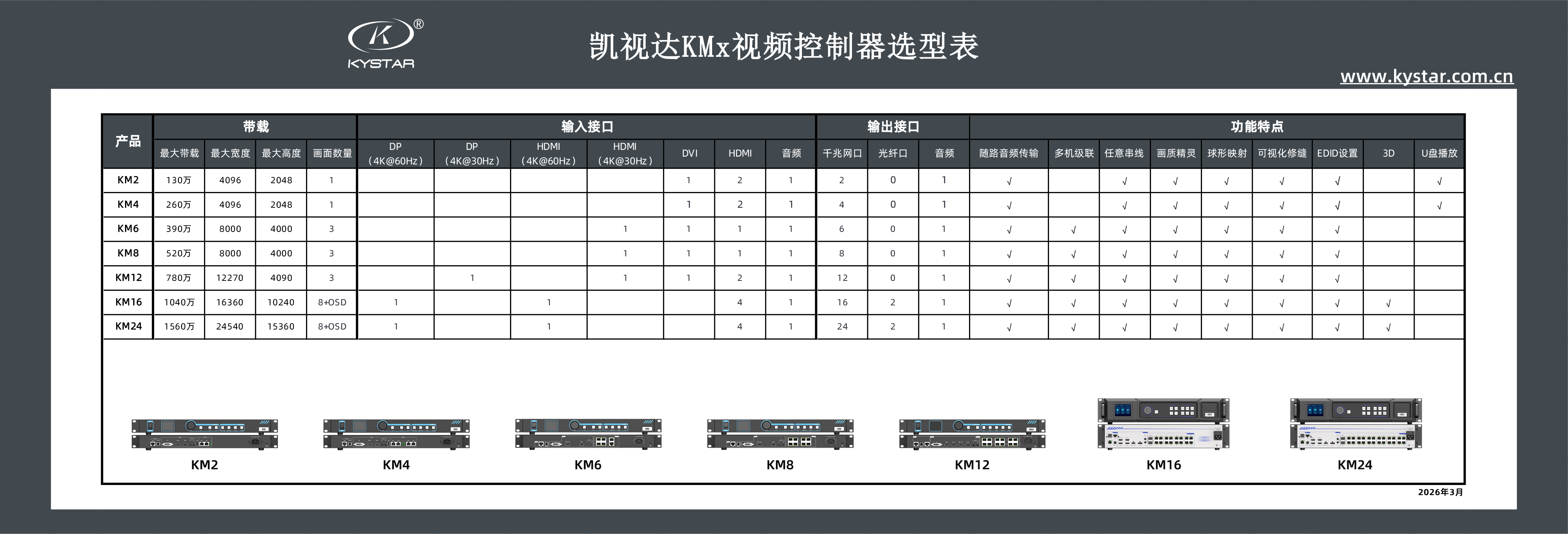KMx系列视频控制器选型表