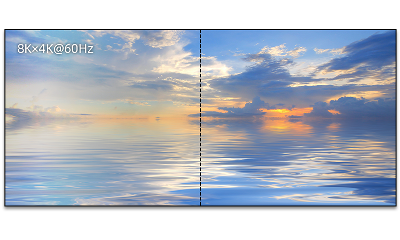 最大支持 8K@60Hz 输入,通过像素级拼接技术, 突破单路带宽限制,满足高分辨率高帧率信号同步处理场景。