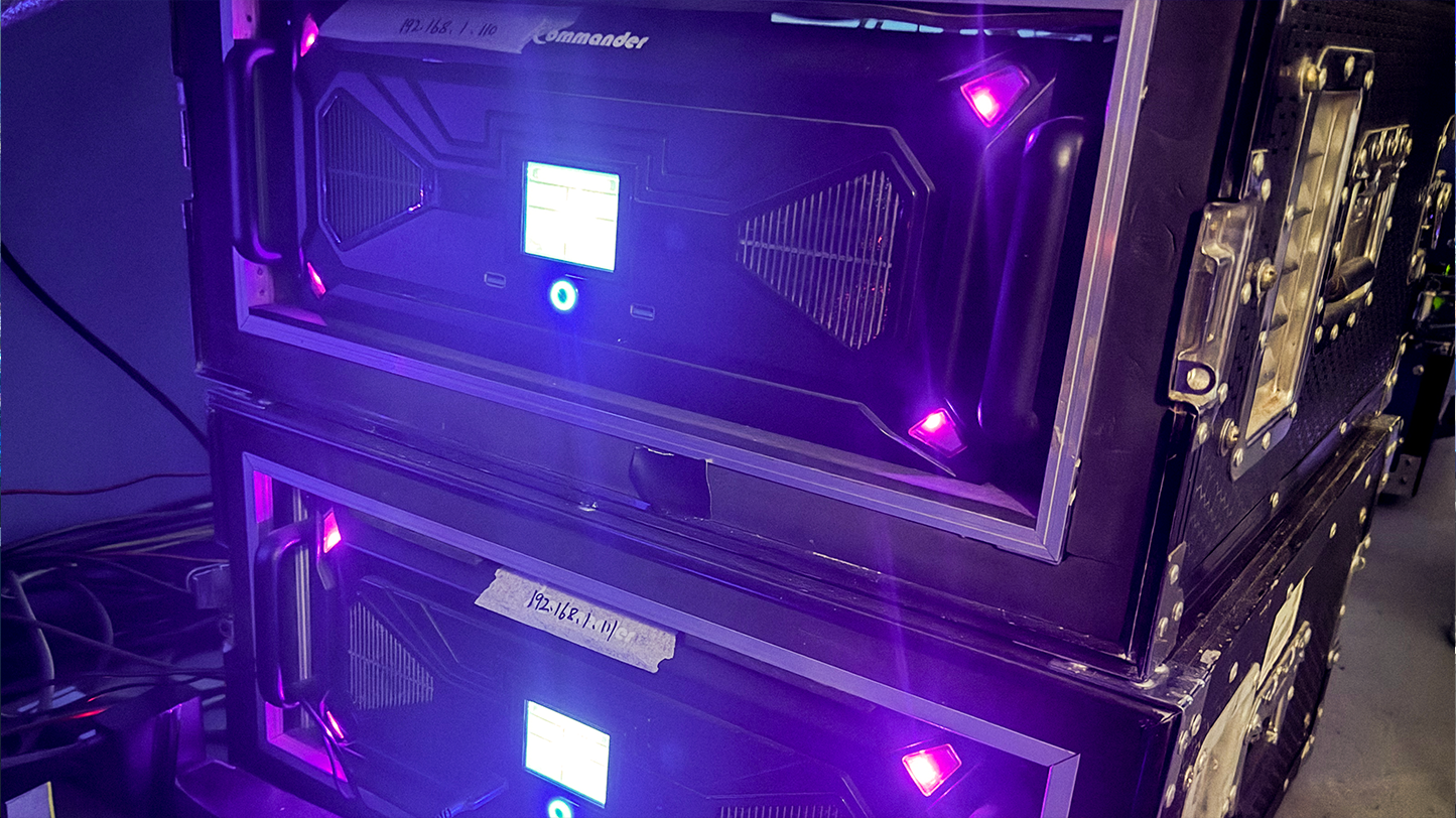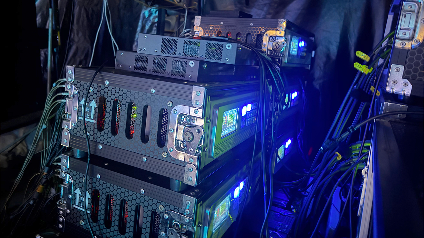 凯视达Kommander播控方案以“1主1备5显示”的架构精准护航全场视觉呈现。7台服务器中,主备双机确保零秒切换的安全播控,5台帧同步显示端通过安全机精准驱动80台投影设备,在地面舞台打造出无缝融合的视觉画面,并与空中透明网幕(260米* 65米)、三大PGM屏幕(18米*11米)实现多屏联动,以帧级同步技术构建了沉浸式数实融合舞台,彰显了大型活动中稳定可靠的播控实力。
