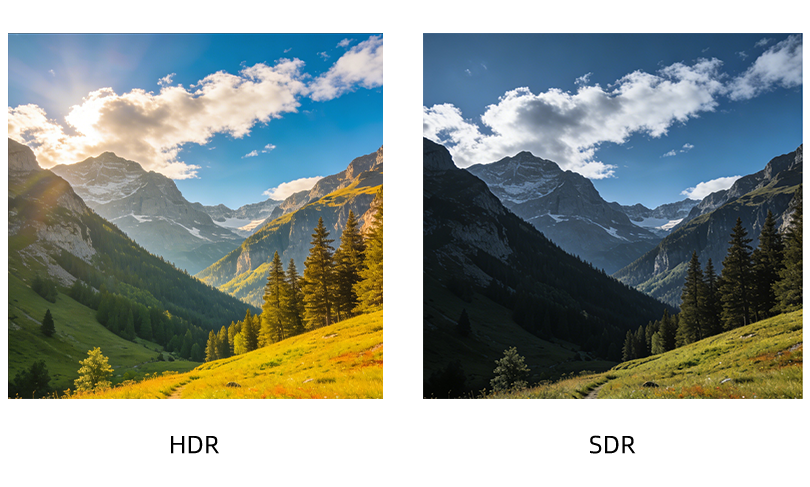 HDR(高动态范围)技术能够呈现更广的亮度和色彩范围,使图像和视频在明暗细节、色彩饱和度和真实感上显著优于传统SDR。