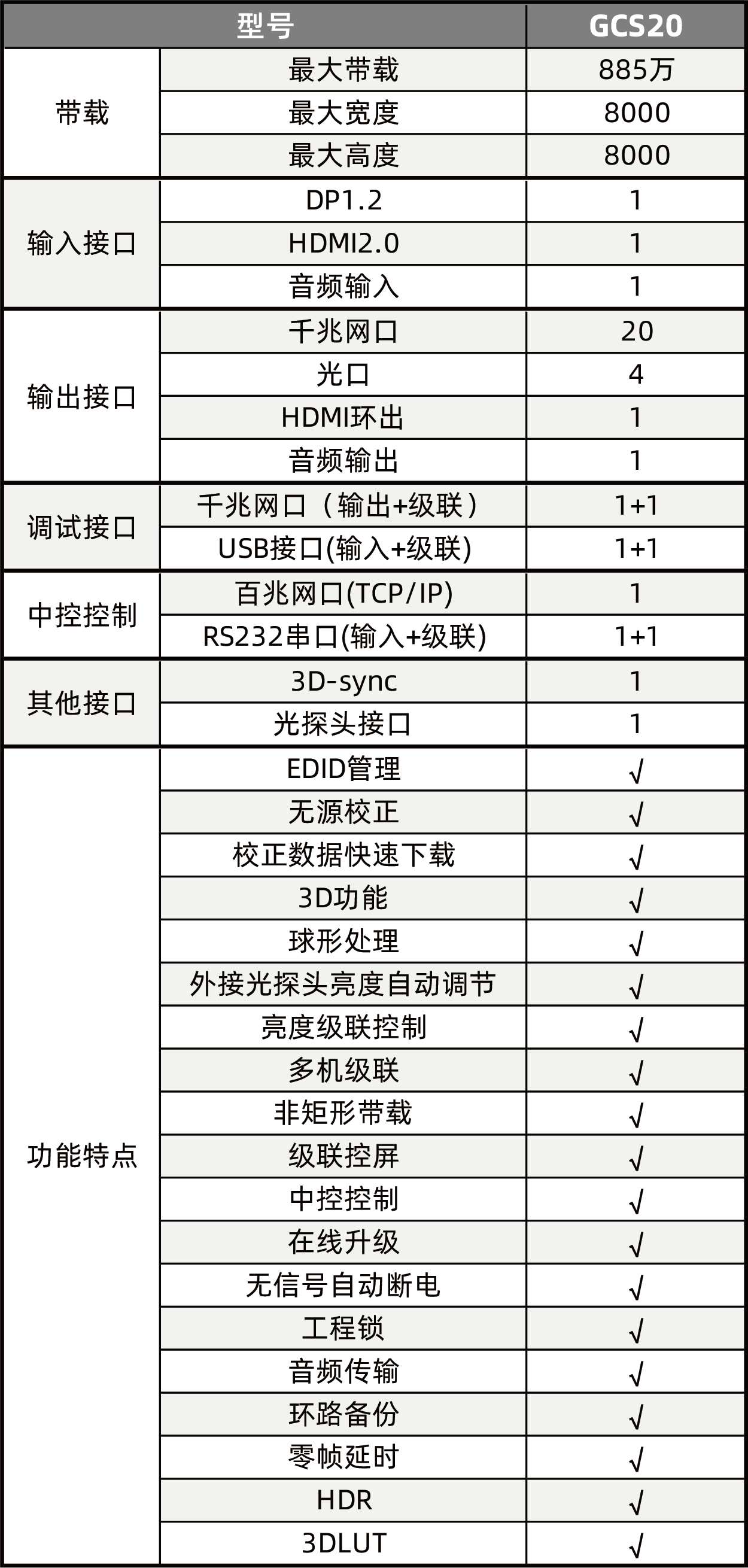 20路网口带载,单机最大带载885W像素,最宽或最高可达8000。