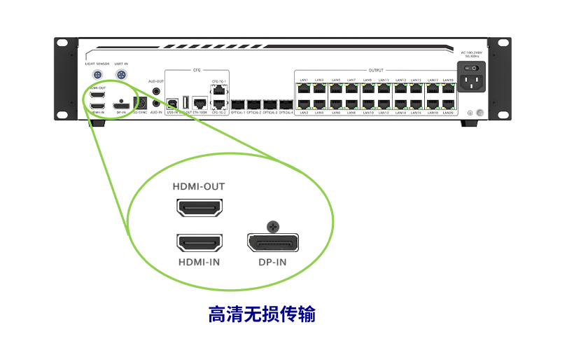 广泛接口兼容:完美兼容HDMI2.0和DP1.2接口标准,轻松接入各类超高清信号源。